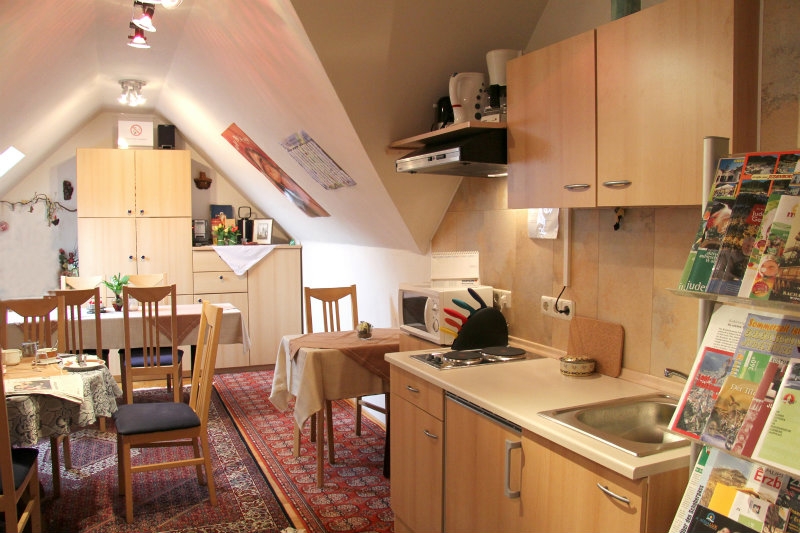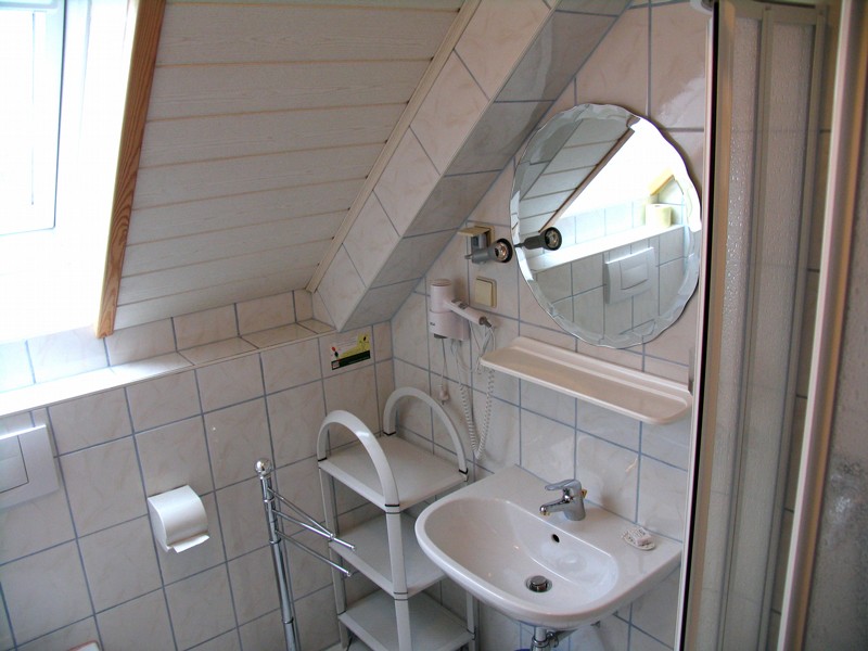 Im 2. Obergeschoss befinden sich drei freundlich eingerichtete Zweibettzimmer und ein Einbettzimmer welche mit Dusche, WC und Kabel-TV sowie mit einem Fön ausgestattet sind. Zusätzlich bieten wir unseren Gästen auch noch einen gemütlich ausgestatteten Aufenthaltsraum an in dem wir auch ein erweitertes Frühstück servieren. Neu zur Verfügung stehen ein Kühlschrank und eine Kochgelegenheit zur Selbstverpflegung. Parkplätze sind direkt beim Haus.